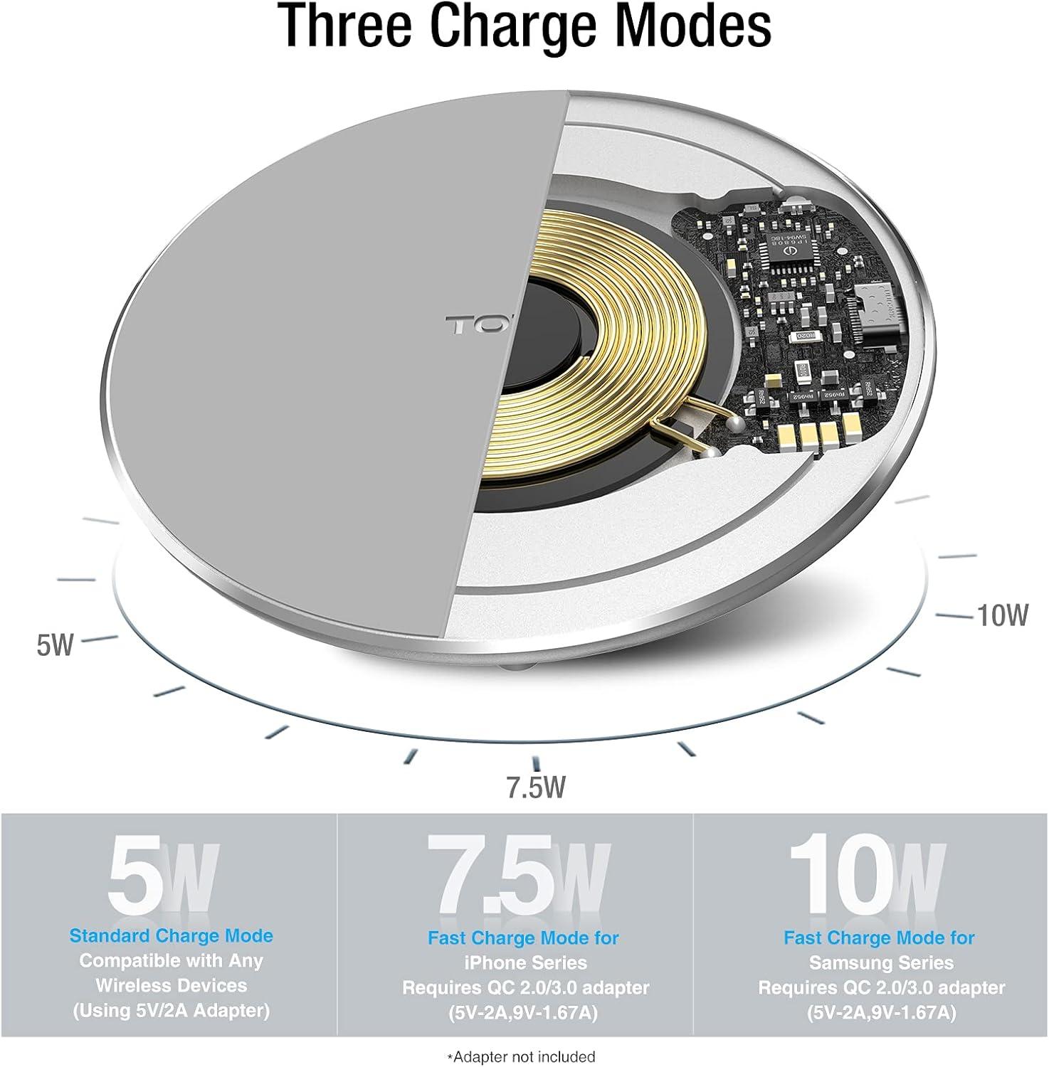 【Upgraded Charging Efficiency Up to 15W】The TOZO charger has passed millions of tests in our lab, the optimized chipset provides 15W charging Compatible for LG phones, 10W charging Compatible for Samsung phones, and 7.5W charging Compatible for iPhone phones.; this Wireless Charging Pads Charge your iPhone from 0 to 100% in just 2-2.5 hours and can charge iPhone 15 up to 50% in half an hour, three times faster than the original 5W iPhone charger.