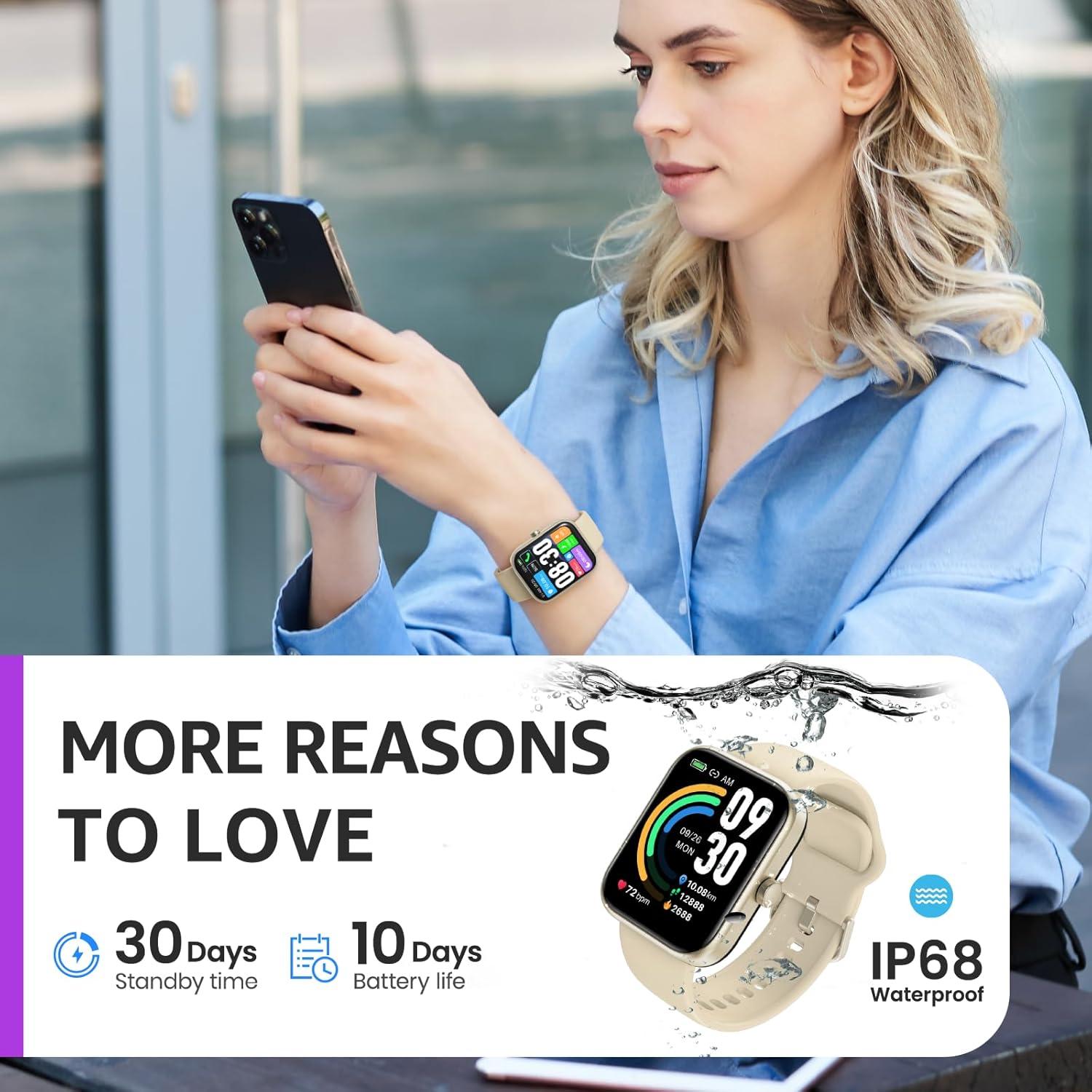 【1.83 inches Large HD Color Touch Screen】1.83 large color screen and full screen touch and hand sliding. It ensures smooth operations and 240*284 resolution for you. Our screen is better at color saturation and reproduction. Personalize your smart watch for men women with multiple customized watch faces provided, make your own stylish smart watch.