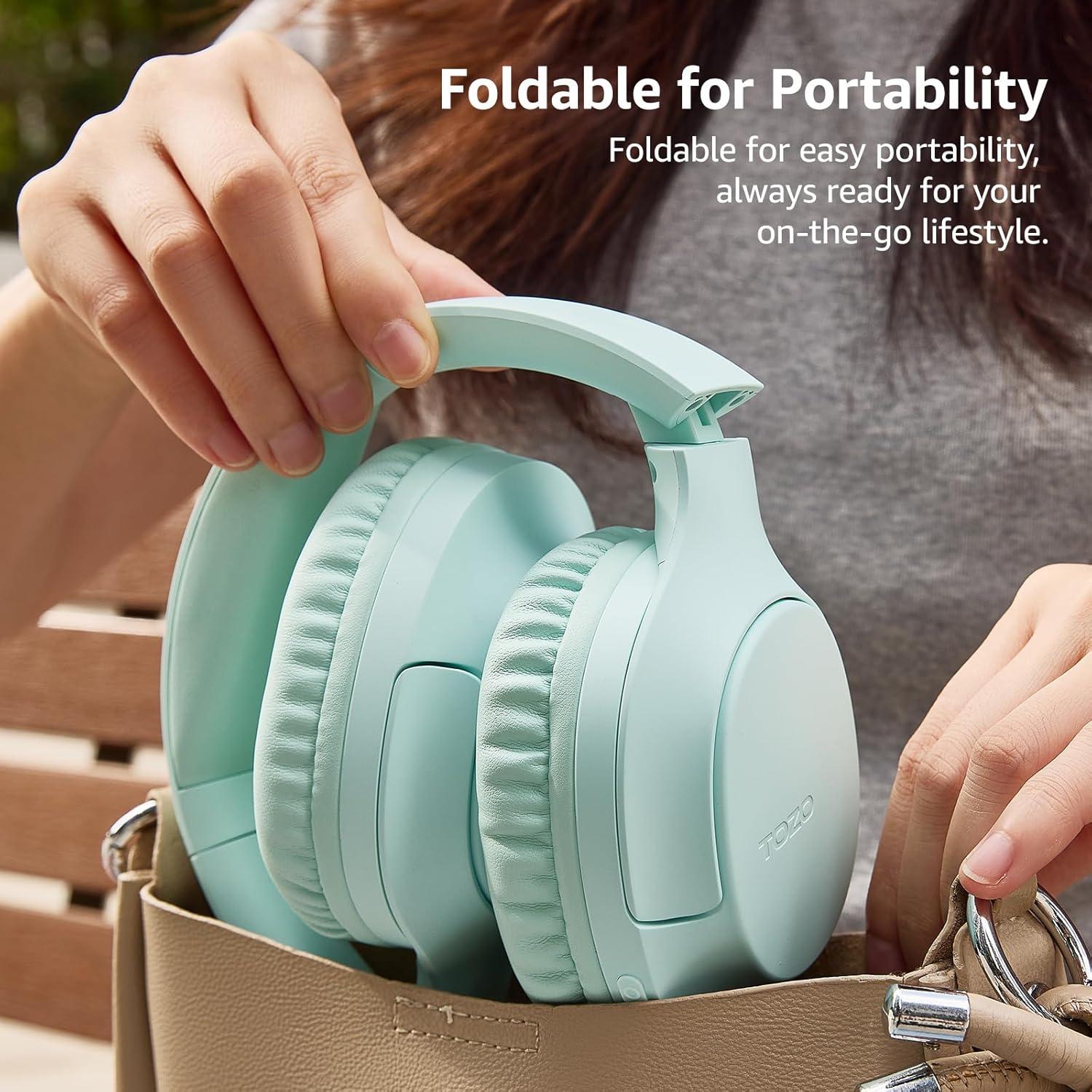 TOZO HA1 Bluetooth 5.4 Over Ear Headphones, 70H Playtime with Mic, Foldable Wireless Headset, Deep Bass Stereo Sound Customizable 32 EQ Music Mode Via Button & App for Travel and Home, Upgraded(Green)