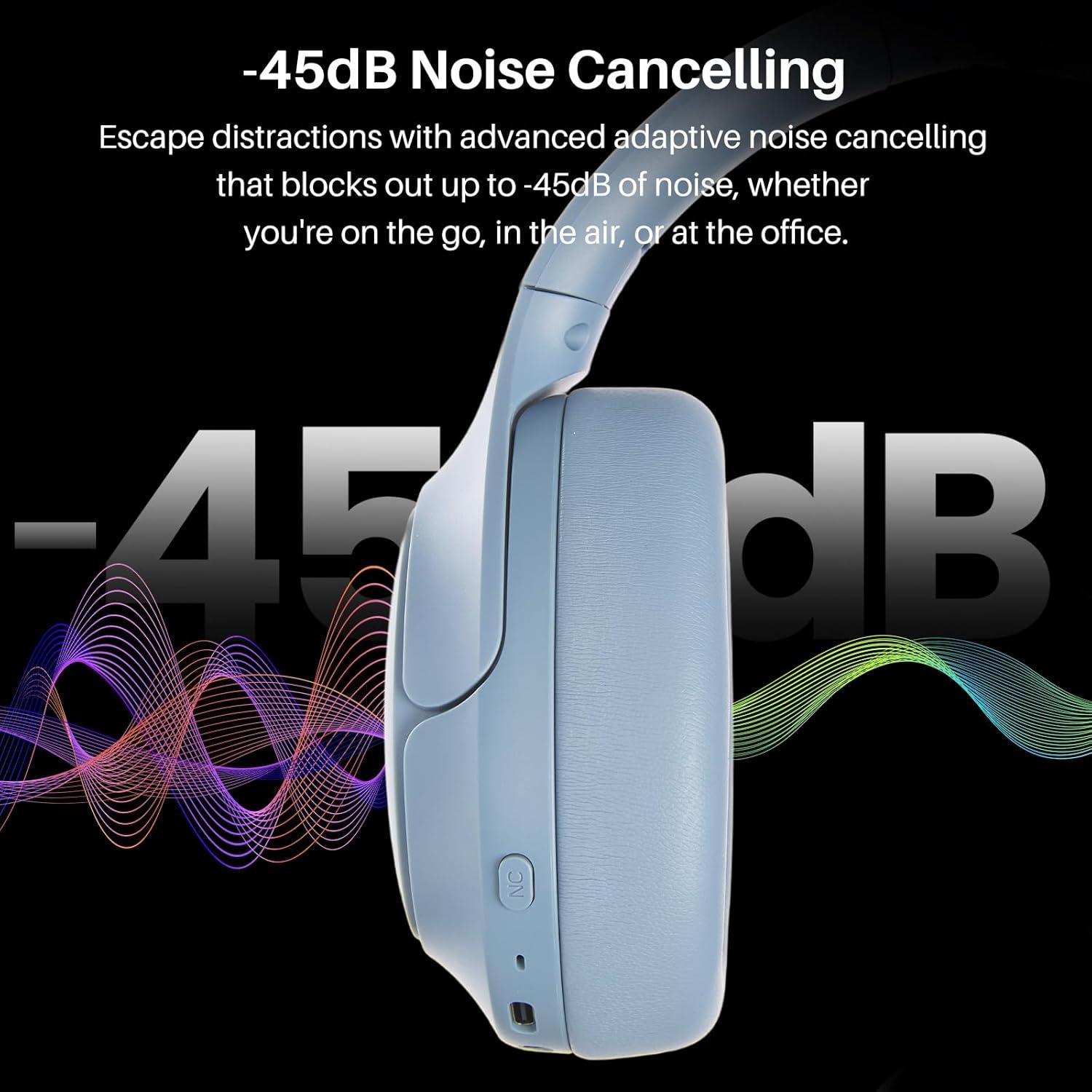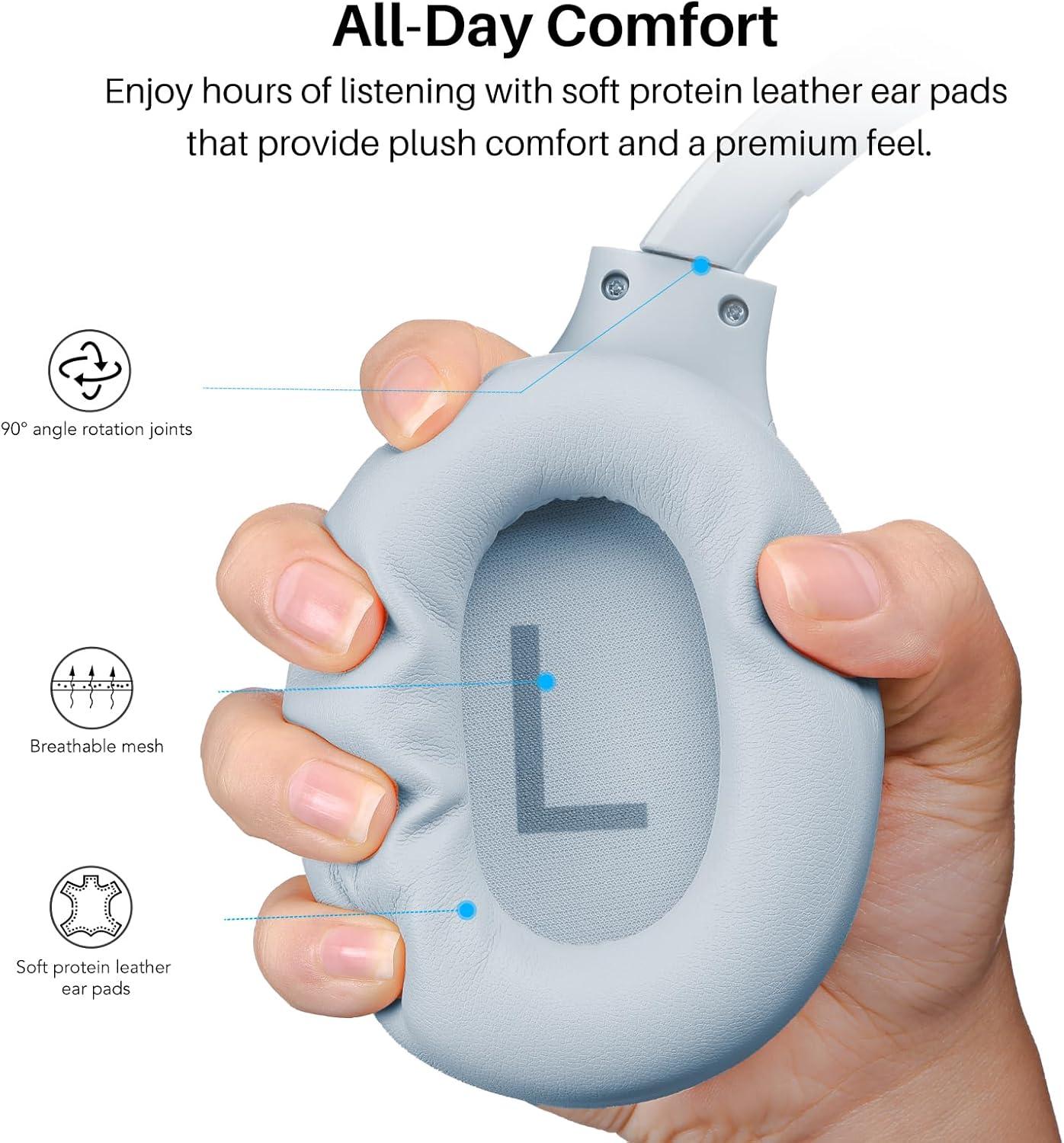 [Up to 60 Hours of Playtime] With up to 60 hours of listening time of our over ear headphones in ANC OFF mode, triple as much as other Bluetooth headphones. A single charge gives you enough juice to listen to over 900 songs or soundtrack multiple long haul flights. Also equipped with a 3.5mm audio cable, you can effortlessly transition to a wired mode when the battery has run out, guaranteeing uninterrupted listening.