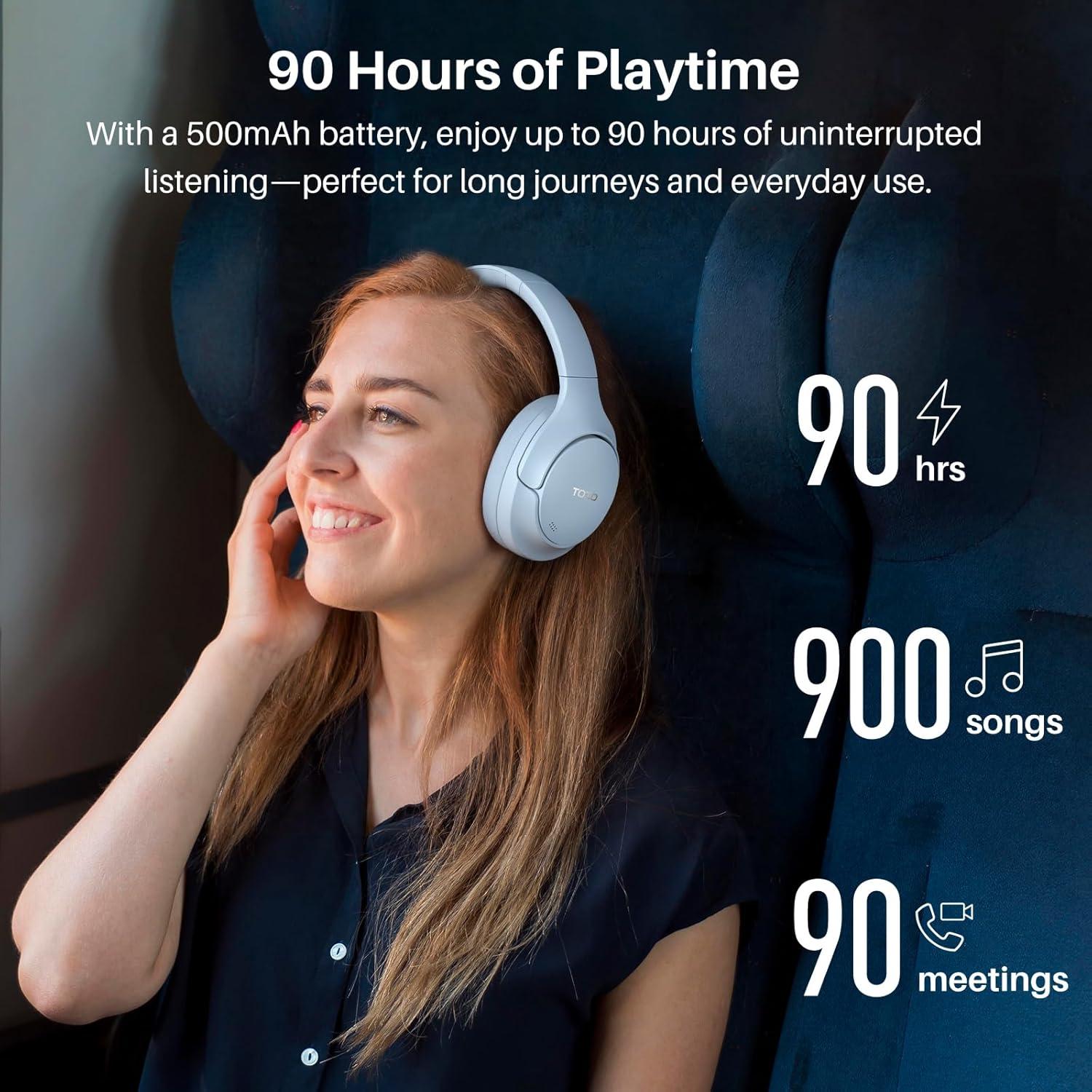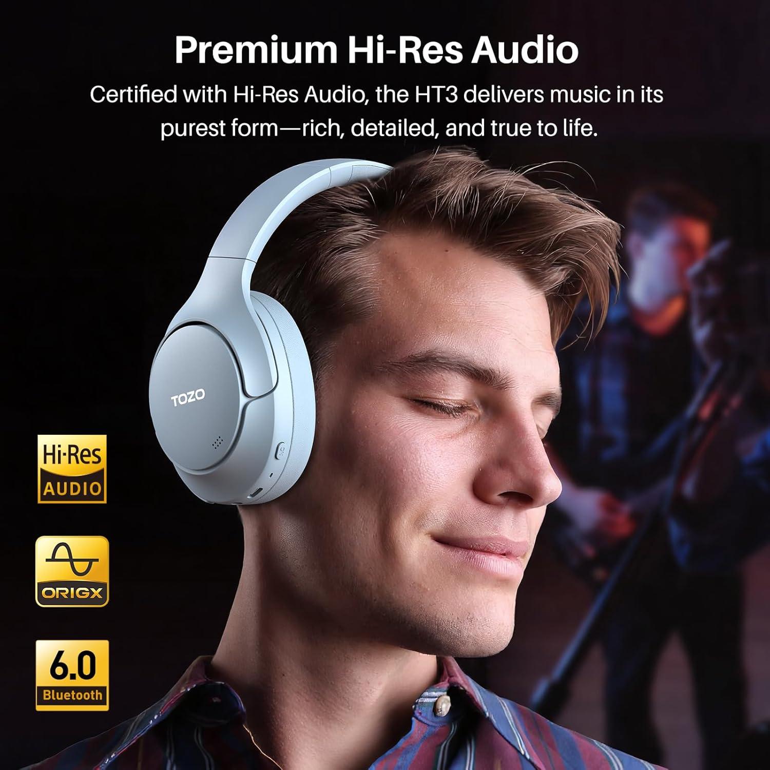 TOZO HT3 Hybrid Noise Cancelling Headphones, 90H Playtime Wireless Over Ear Bluetooth Headset, Spatial Audio AI Chat with 5 Mics, Supports Dual Connection and USB-C Input, with 32 EQ Music Modes(Blue)