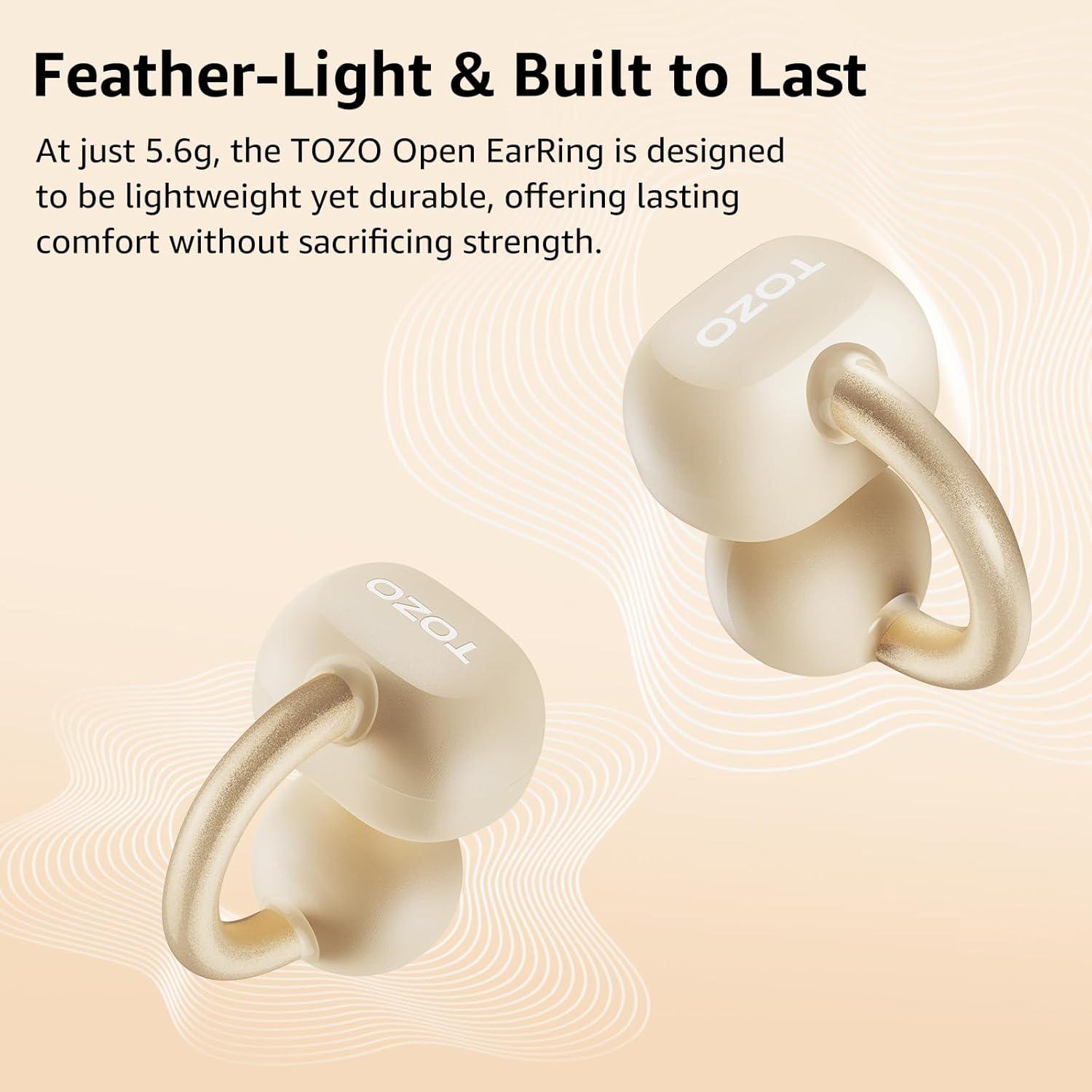 [SUPREMELY COMFORTABLE ULTRA-LIGHT] – Enjoy unparalleled comfort with TOZO OpenEarRing, expertly crafted for high-resilience materials and featuring a secure clip-on design, with a single earbud is only weigh 5.1g, allowing you to enjoy music with a lightweight and pressure-free experience.