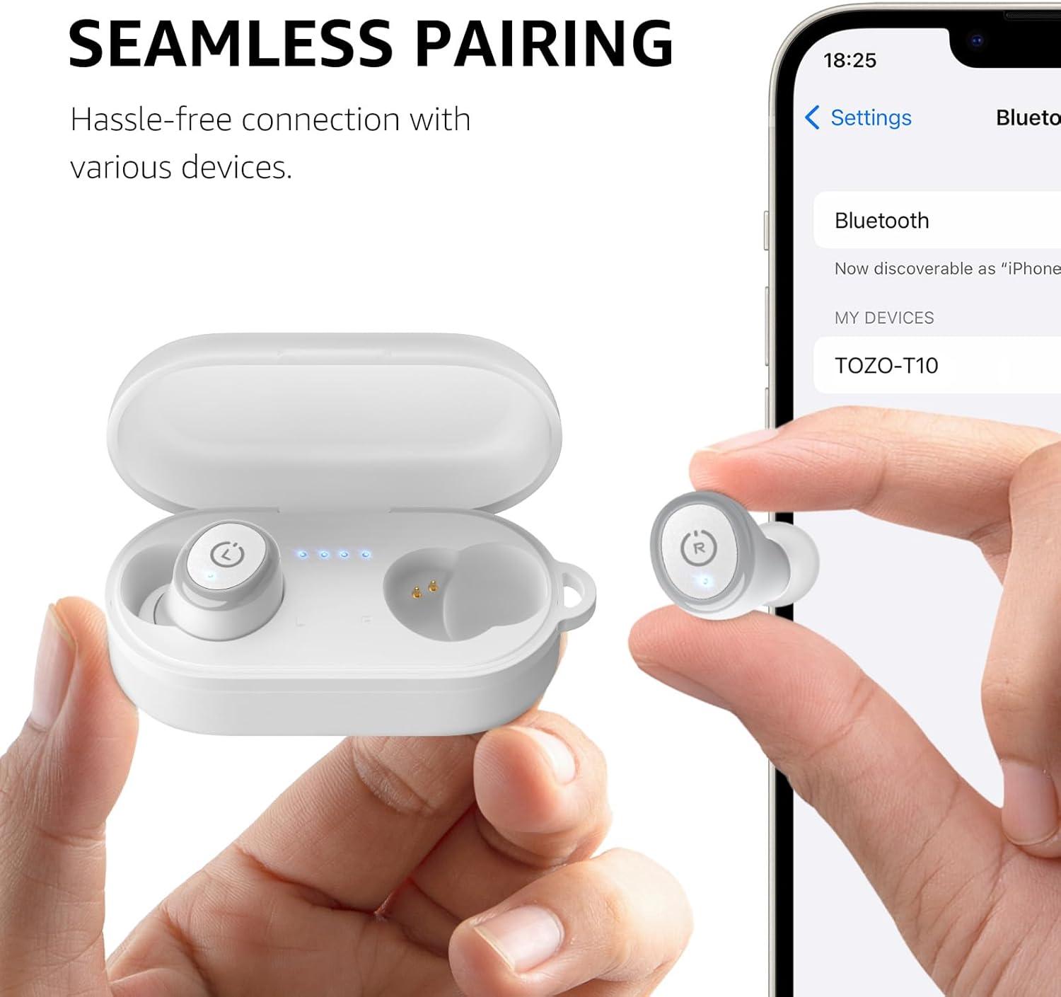 TOZO T10 Wireless Earbuds Bluetooth 5.3 Headphones, App Customize EQ, Ergonomic Design, 55H Playtime, Wireless Charging Case, IPX8 Waterproof Sound in-Ear Headset, New Version(Matte White)