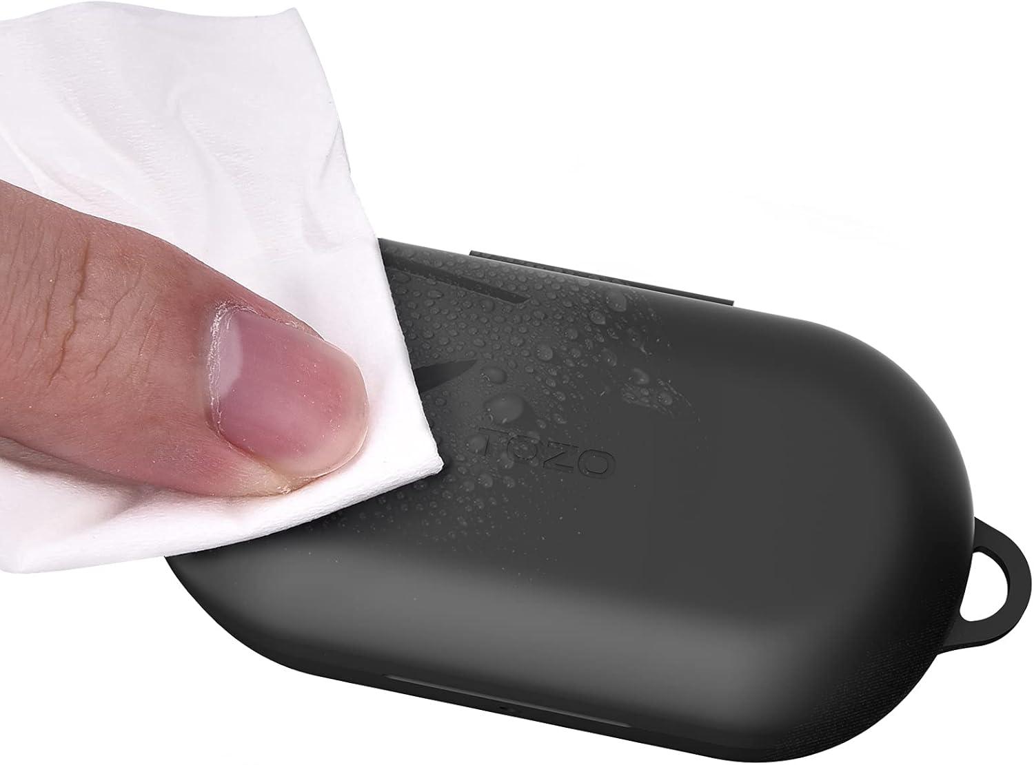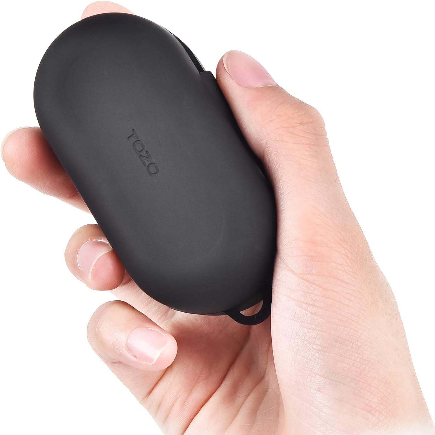 TOZO T12 Protective Silicone Case Shockproof Soft Skin Cover for TOZO T12 Earbuds with Front LED Visible and Keychain Black(Black)