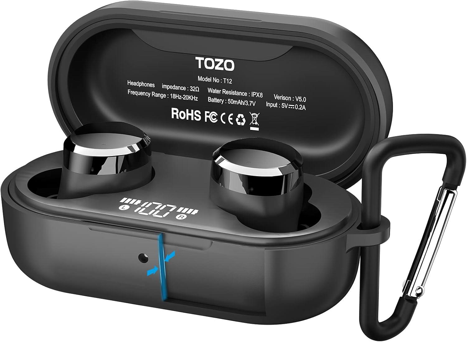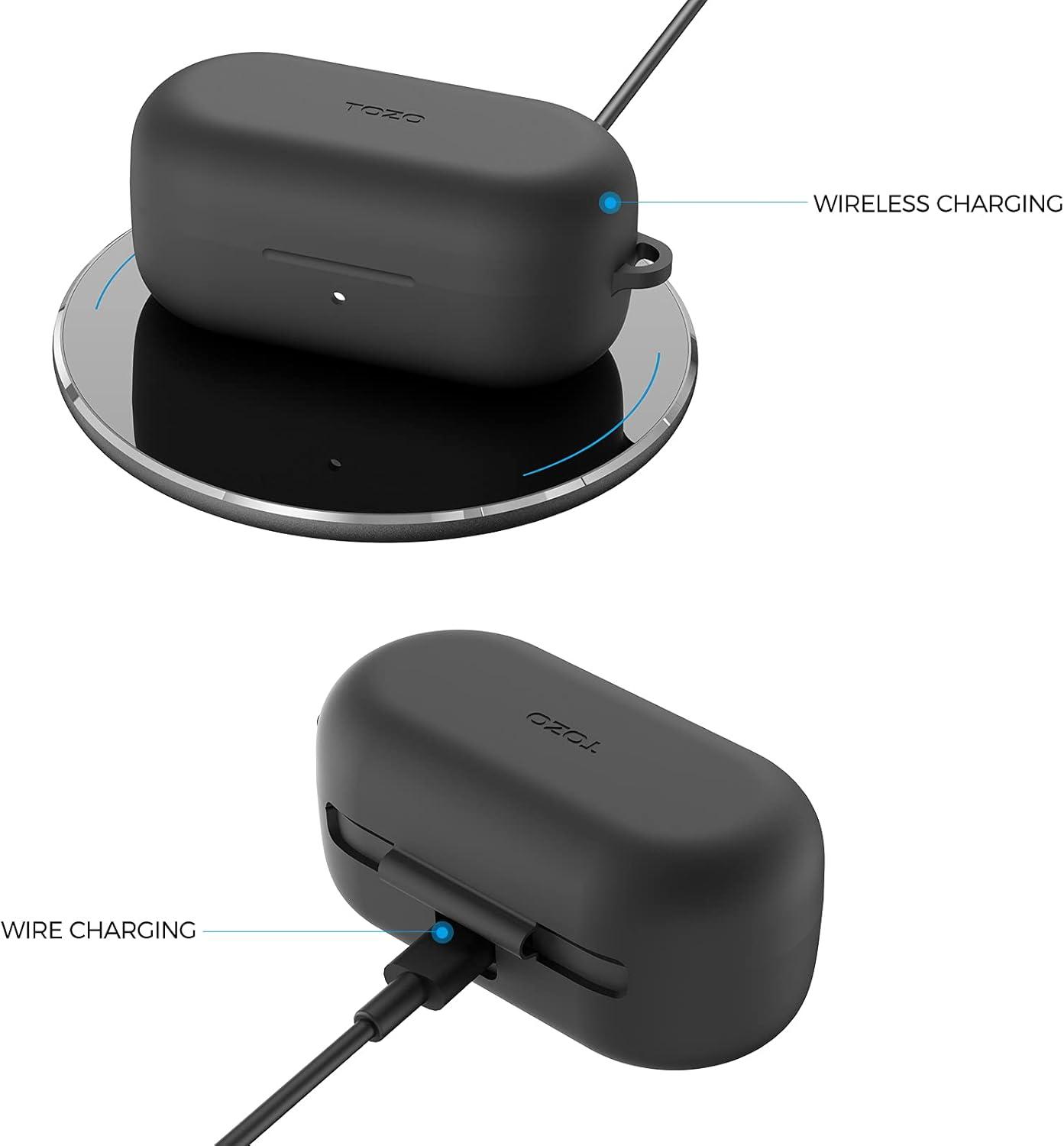 【Perfect Fit】Applying the latest technology, the TOZO T12 protective silicone case fits snugly on the earbuds and is not easy to drop. With the bottom dust plug design, it keeps the charging port clean and sealed when not in use.