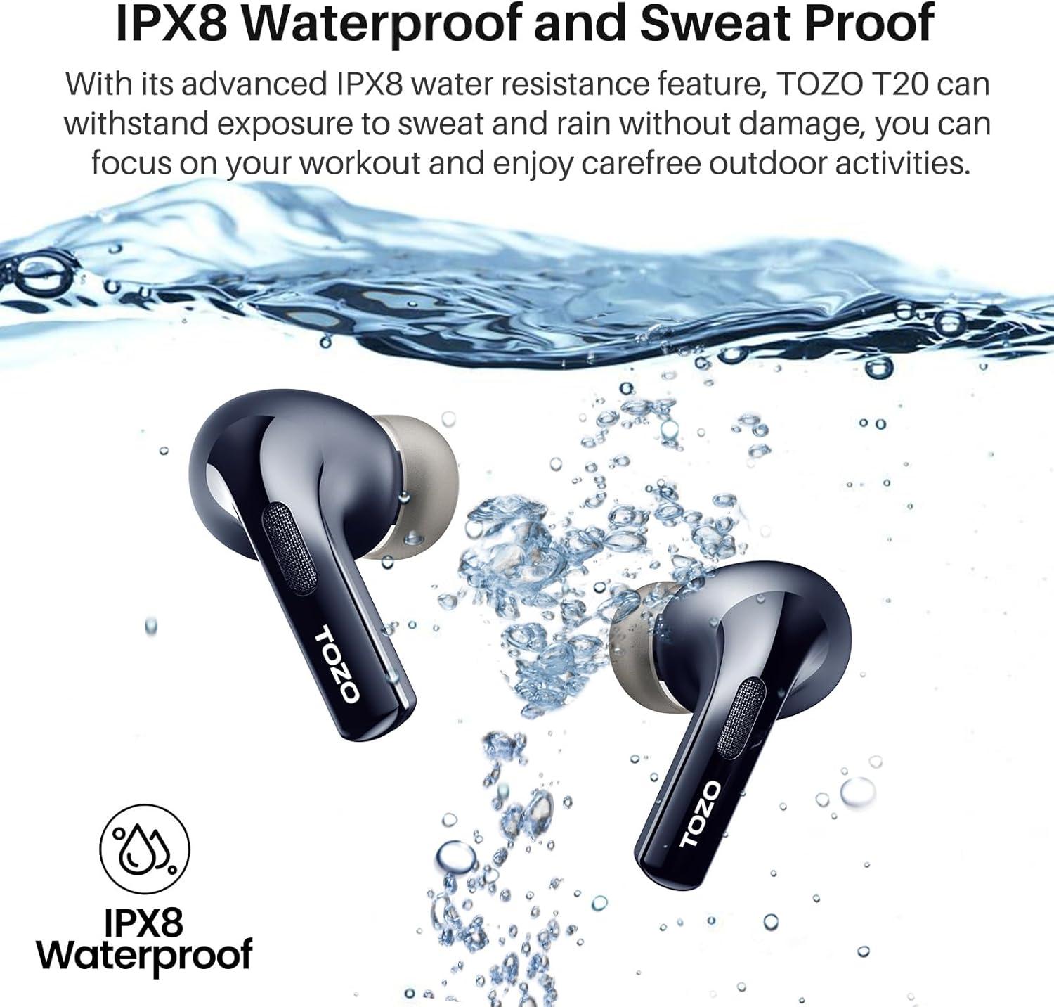 [ENC with Dual Mic Call Noise Reduction] TOZO T20 bluetooth headphones dual microphone built-in equipped the latest moving-coil Horn loudspeaker with bigger dynamic driver. Noise Reduction can make others hear you very clearly while phone calls, providing you with more realistic call sound and reproducing your music vividly.