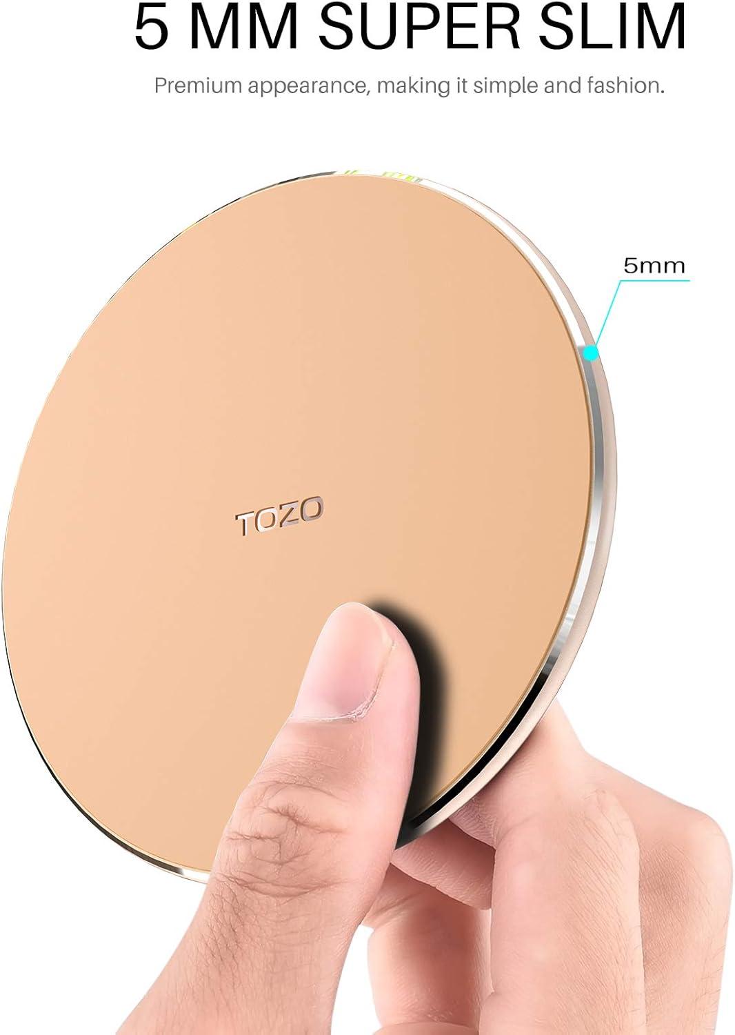 TOZO Wireless Charger 15W Max Fast Wireless Charging Pad Compatible with iPhone 16/16 Plus/16 Pro Max /15/14/13/SE/12 Series, Samsung Galaxy S24/S23/S22 Series (No AC Adapter), Glossy Black(Champagne)